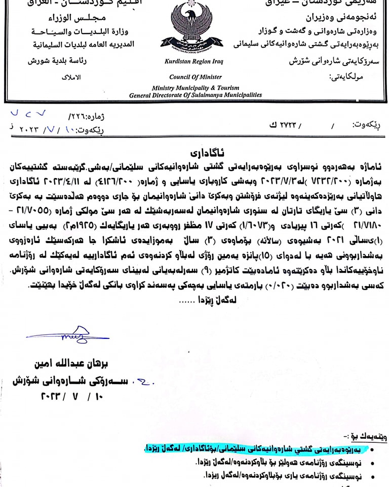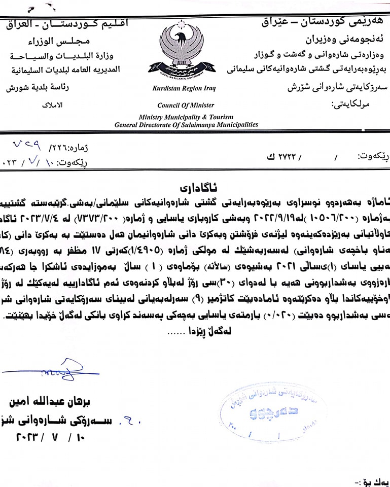 سەرەتا/بانگەواز و ئاگادارى/شارەوانی شۆڕش دوو ئاگاداری ڕادەگەیەنێت بانگەواز و ئاگادارى شارەوانی شۆڕش دوو ئاگاداری ڕادەگەیەنێت Facebook Twitter LinkedIn Pocket Messenger Messenger WhatsApp Telegram Viber Share via Email بەکرێ دانی کابینەیەك لەناو باخچەی شارەوانی بە کرێ دانی سێ یاریگای تارتان Facebook Twitter LinkedIn Pocket Messenger Messenger WhatsApp Telegram Viber Share via Email Share Facebook Twitter LinkedIn Pinterest Messenger Messenger WhatsApp Viber Share via Email Print