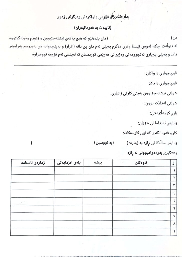 سەرەتا/بانگەواز و ئاگادارى/گشتاندن / فۆڕمی تایبەت بە دابەشکردنی زەوی بەسەر فەرمانبەران بانگەواز و ئاگادارى گشتاندن / فۆڕمی تایبەت بە دابەشکردنی زەوی بەسەر فەرمانبەران Facebook Twitter LinkedIn Pocket Messenger Messenger WhatsApp Telegram Viber Share via Email Facebook Twitter LinkedIn Pocket Messenger Messenger WhatsApp Telegram Viber Share via Email Share Facebook Twitter LinkedIn Pinterest Messenger Messenger WhatsApp Viber Share via Email Print