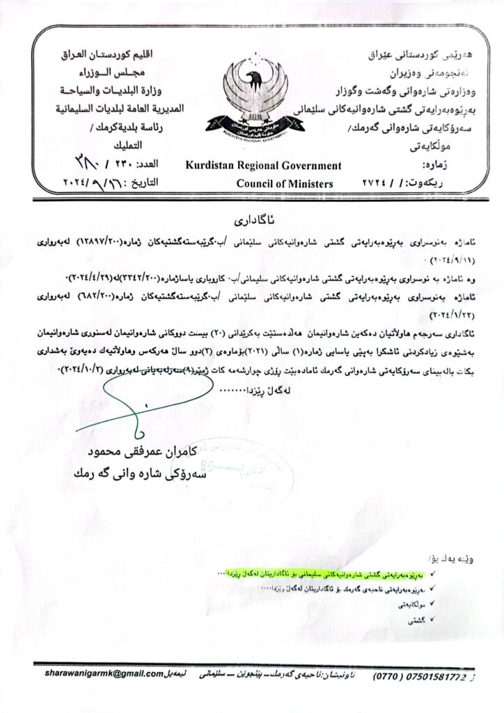 سەرەتا/بانگەواز و ئاگادارى/ئاگاداریەك لە سەرۆکایەتی شارەوانی گەرمكەوە – بەکرێدانی 20 دووکان لەسنوری شارەوانی بانگەواز و ئاگادارى ئاگاداریەك لە سەرۆکایەتی شارەوانی گەرمكەوە – بەکرێدانی 20 دووکان لەسنوری شارەوانی Facebook Twitter LinkedIn Pocket Messenger Messenger WhatsApp Telegram Viber Share via Email Facebook Twitter LinkedIn Pocket Messenger Messenger WhatsApp Telegram Viber Share via Email Share Facebook Twitter LinkedIn Pinterest Messenger Messenger WhatsApp Viber Share via Email Print