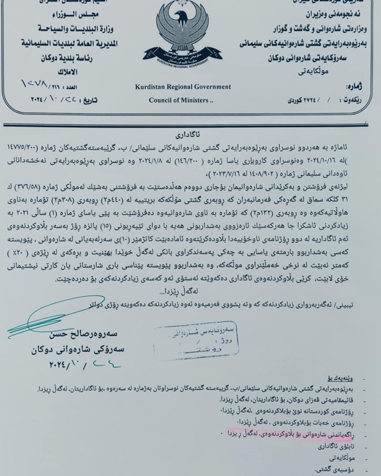 ئــاگــاداریەک لەسەرۆکایەتی شارەوانی دووکان